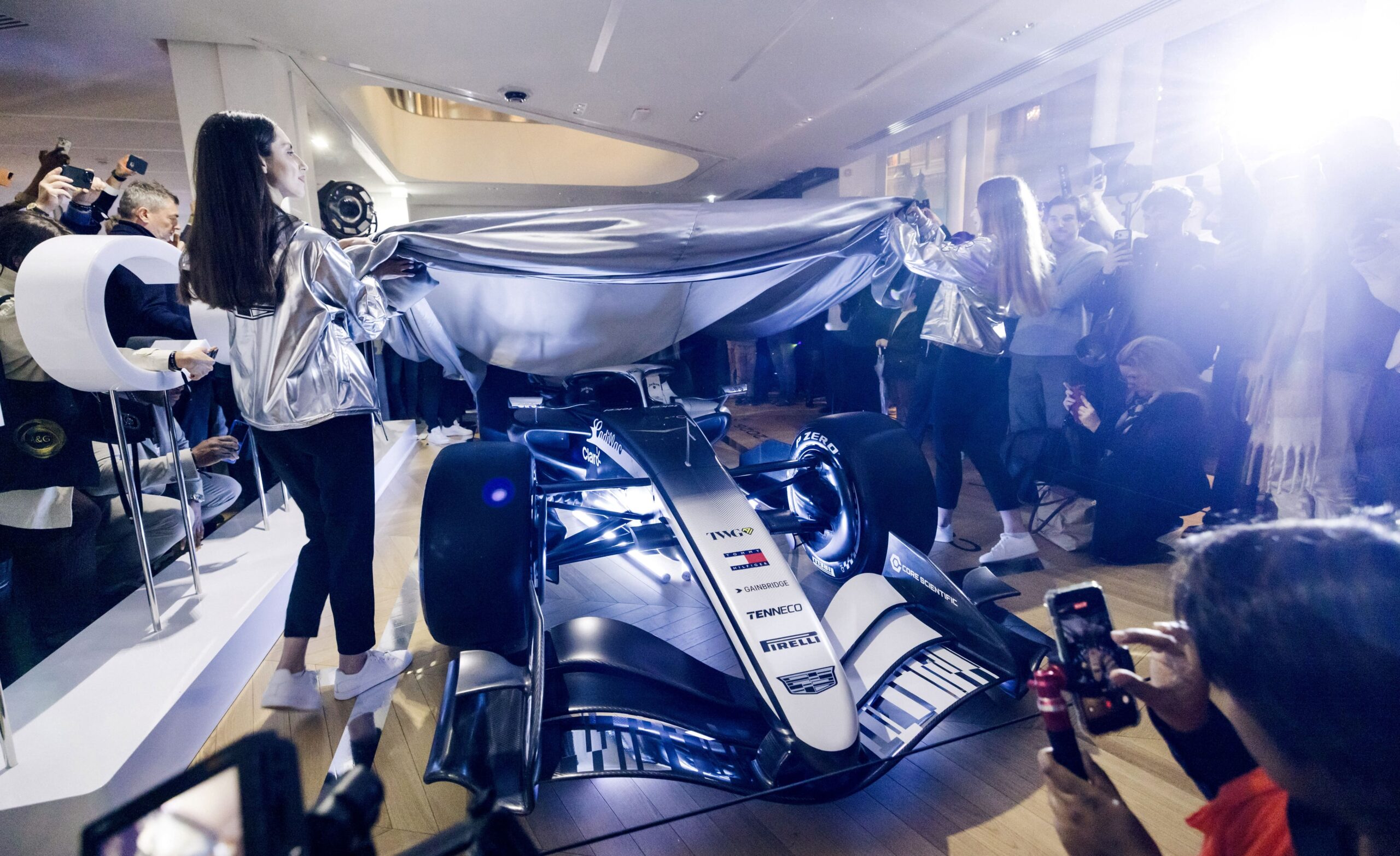 La livrée de la première F1 Cadillac a été conçu comme un véritable spectacle. Les invités, impatients de découvrir la voiture, ont vécu un moment de suspense intense. Nos hôtesses ont guidé le déroulé du reveal avec maîtrise et élégance, assurant une mise en scène parfaite.