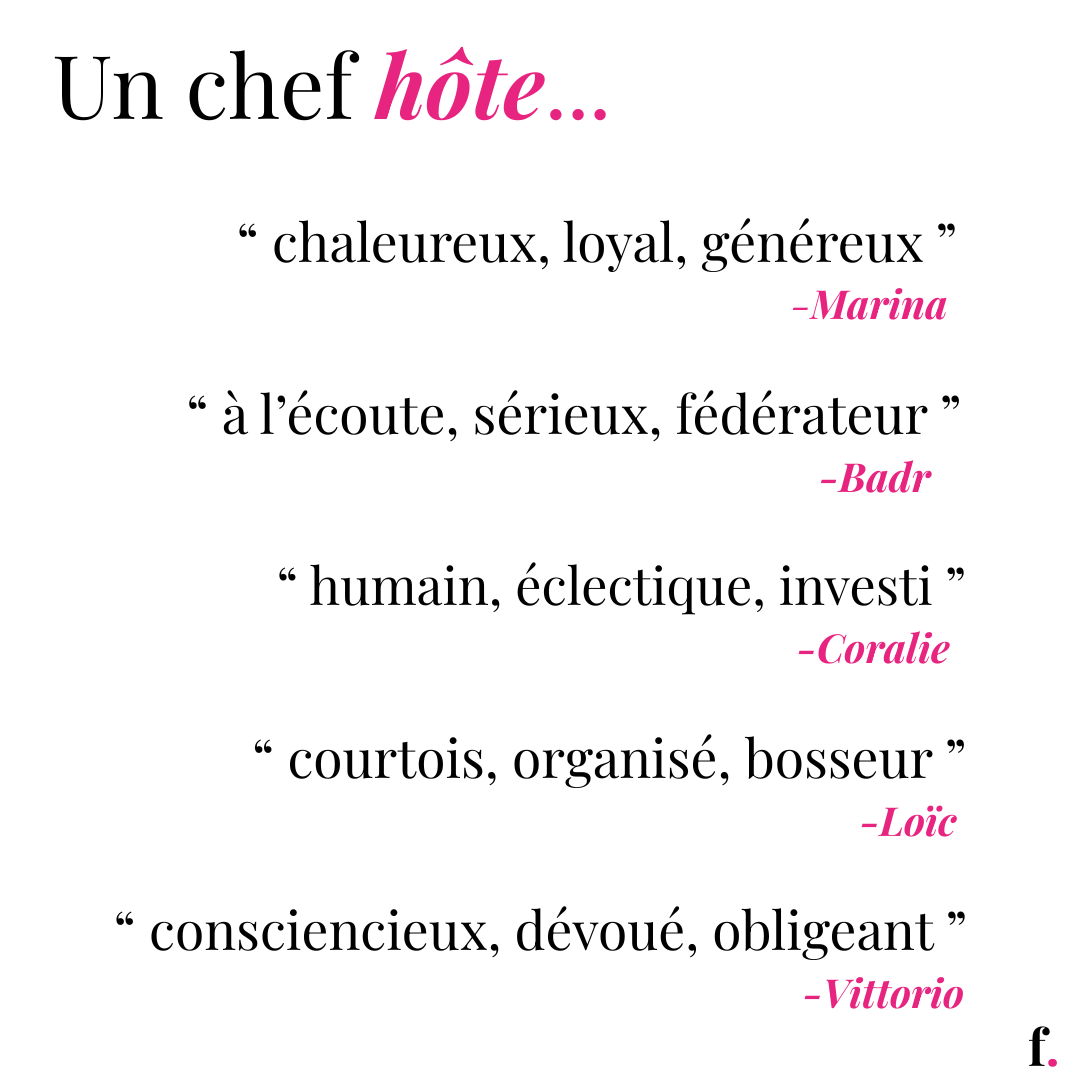 Méticuleux et rigoureux, notre chef hôte accorde une attention particulière aux détails. Son sens de l’organisation – incarné par son incontournable carnet et son stylo – lui permet d’assurer un suivi optimal et une exécution sans faille.