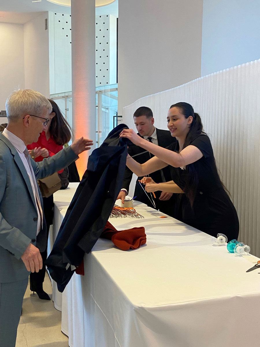 - Élégance et cohérence visuelle : nos équipes ont porté une combinaison noire sobre et élégante ou un costume noir avec une cravate noire, sublimé/e par une boutonnière personnalisée, en parfaite harmonie avec le standing de la soirée.